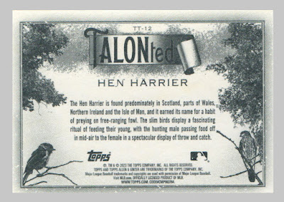 Well, 2023's Allen & Ginter baseball release contained an insert set called "TALONted". Within it were 20 different birds of prey. Seeing a couple of the cards online was enough for me to want to collect the full set. (It would be my first completed A&G insert set since I finished acquiring all 10 Magnificent Moons cards back in 2019.)